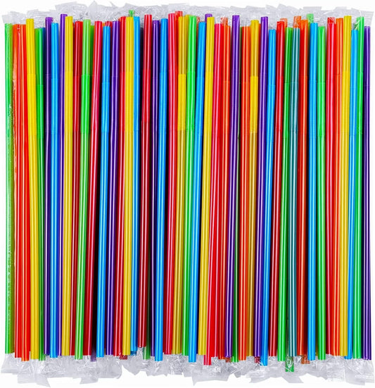 100PCS Flexible Plastic Straws, Colorful Disposable Bendy Party Fancy Straws12.8inch Extra Long Straws Party Decorations